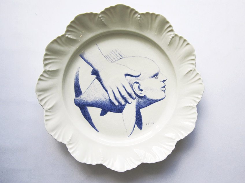Création d’une illustration sur une assiette. Commande de Philippe Starck pour la décoration du restaurant de l’Hôtel Royal Monceau, Paris 8e.