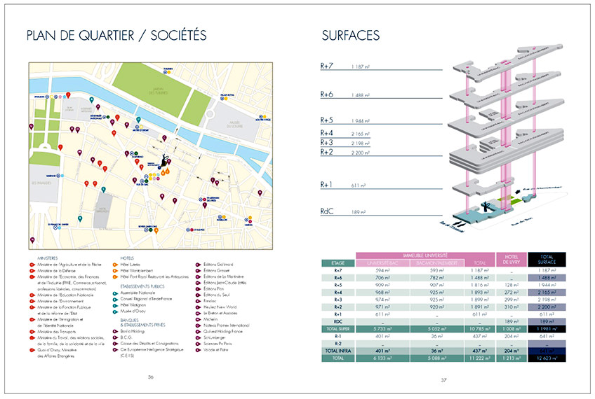 Conception et création graphique de la brochure commerciale de présentation du projet immobilier situé au 25 rue de l’Université, Paris 7e