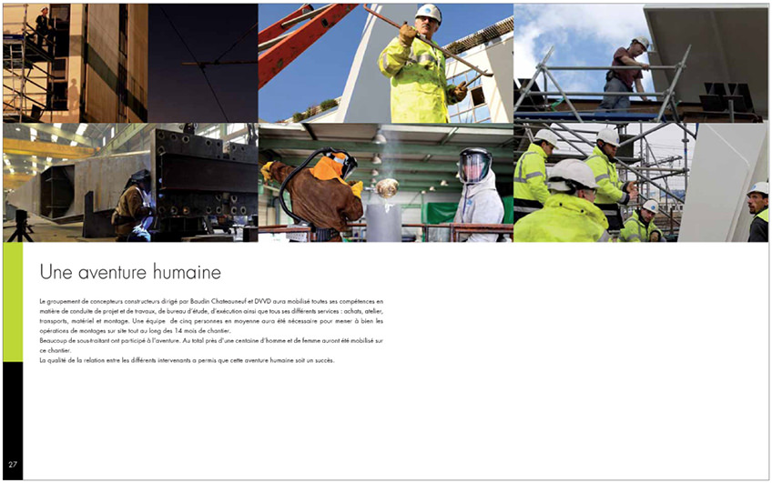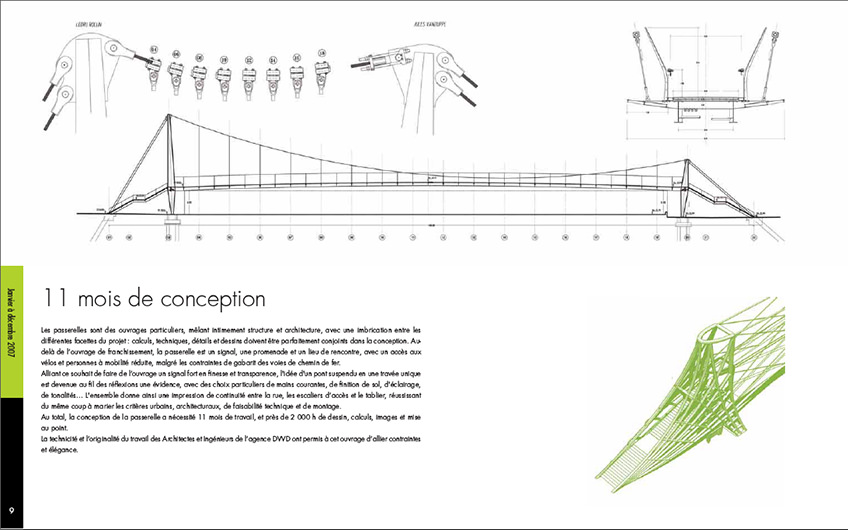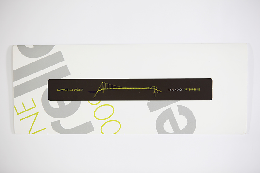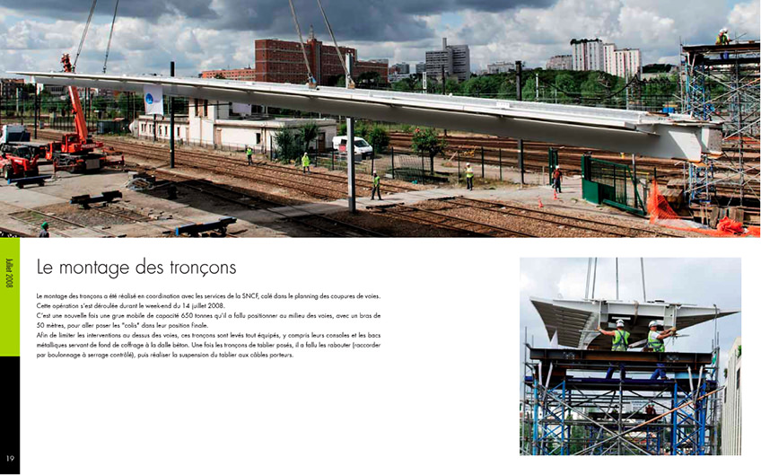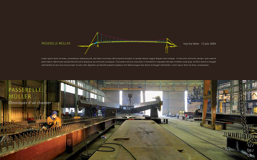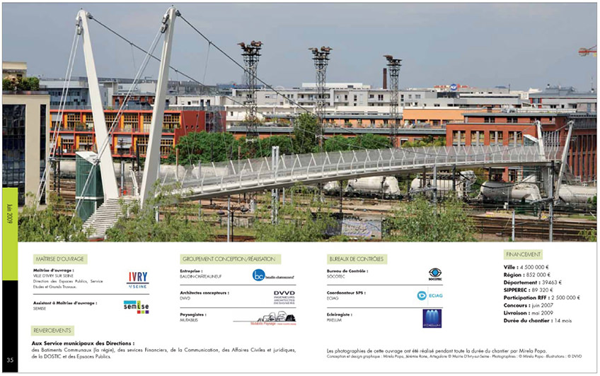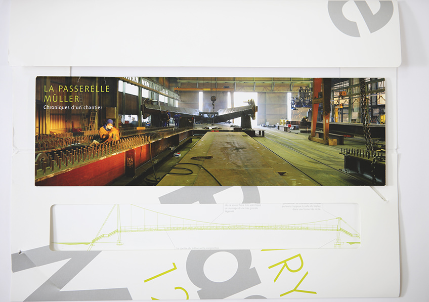Conception graphique de la brochure Passerelle Müller, Chroniques d’un chantier, Ivry-sur-Seine.