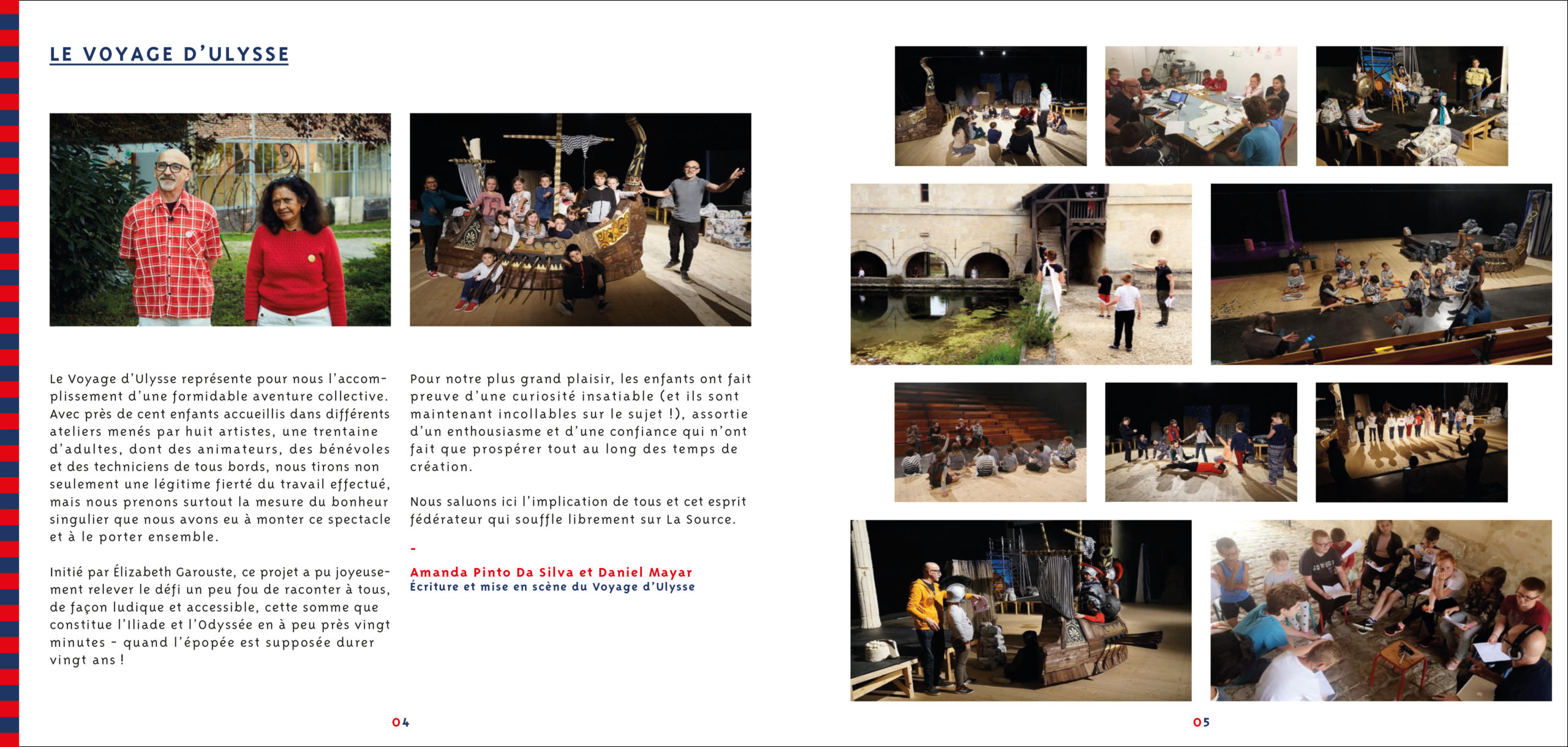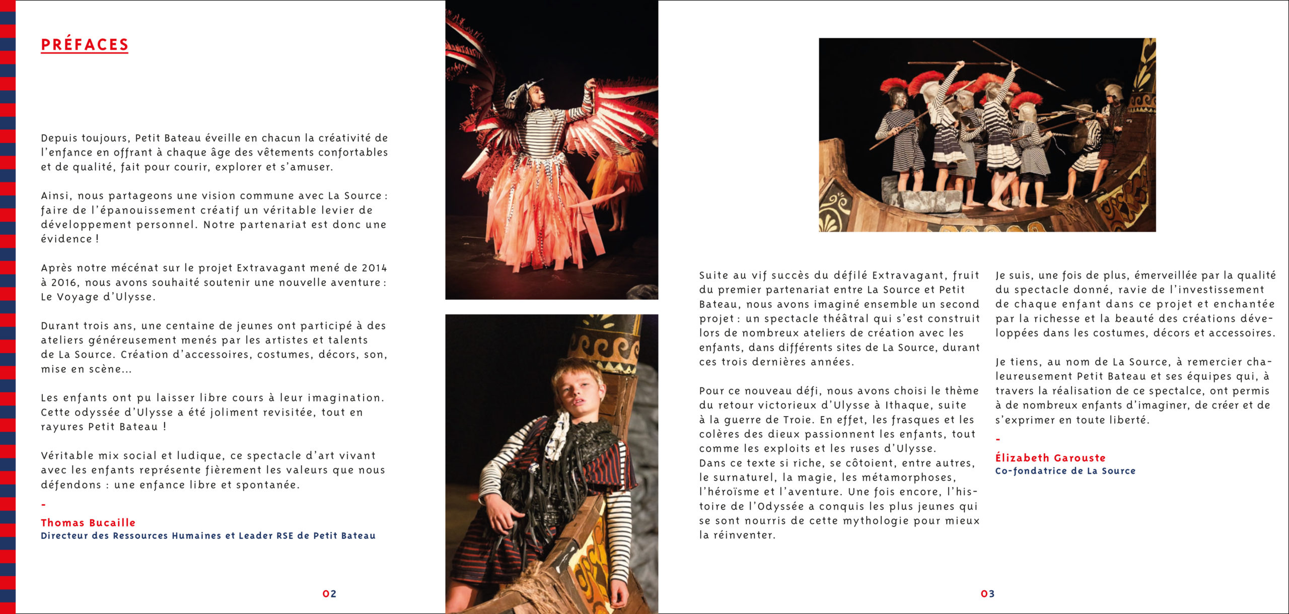 Conception graphique de la brochure de présentation du spectacle Le Voyage d’Ulysse, réalisé entre 1018 et 2020 par La Source en partenariat avec Petit Bateau.