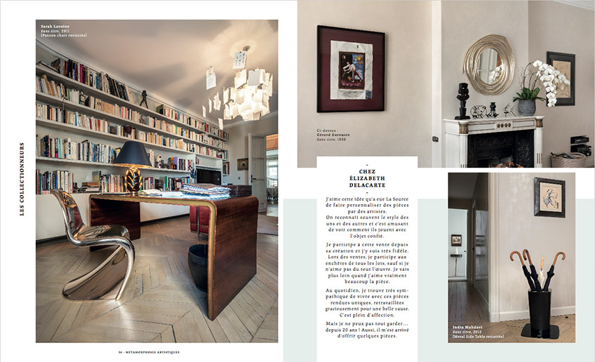 En décembre 2017, à l’occasion de la 20e édition de la vente aux enchères au profit de l’association La Source, nous publions Métamorphoses Artistiques, qui témoigne de la créativité et du talent des meilleurs artistes plasticiens, designers, architectes et stylistes qui, chaque année, ont transformé un objet pour créer une oeuvre unique. L’ouvrage invite également le lecteur à découvrir les oeuvres chez les collectionneurs, dans l’intimité de leur intérieur.