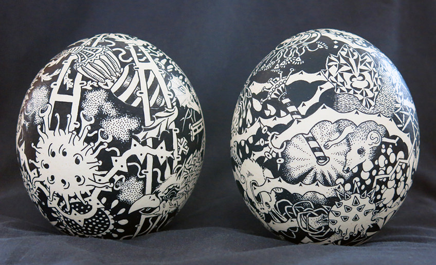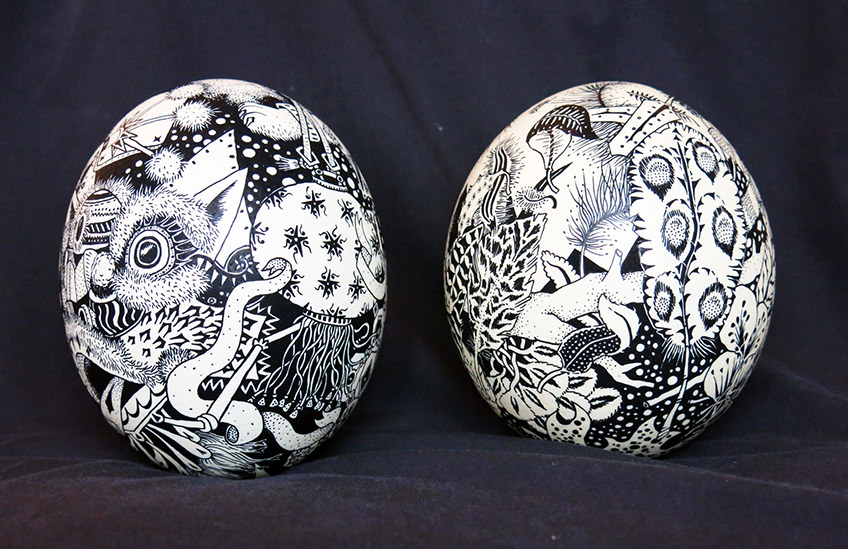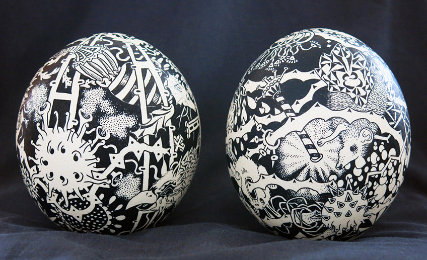 Dessin au Posca sur oeufs d’autruches- commandes particulières