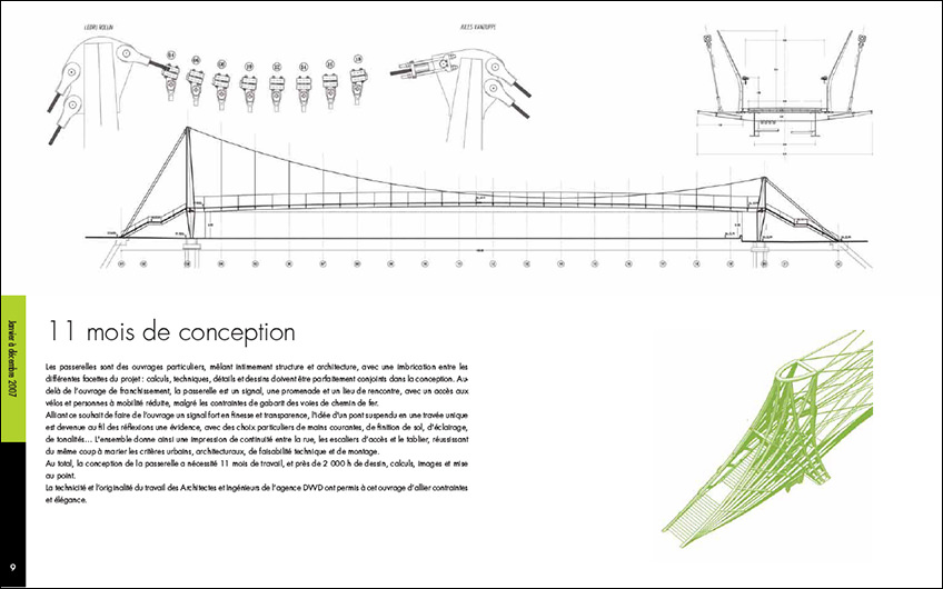 Conception et création graphique de la brochure commerciale de présentation de la passerelle Müller située à Ivry-sur-Seine.