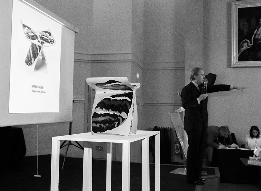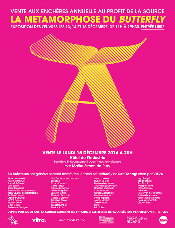 Organisation de la vente aux enchères annuelle au profit de l’association La Source : 50 artistes plasticiens et designers transforment le tabouret Butterfly de Sori Yanagi. Commissaire priseur : Simon de Pury.