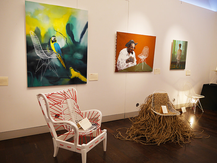 50 artistes plasticiens et designers transforment la Wire Chair de Charles & Ray Eames.